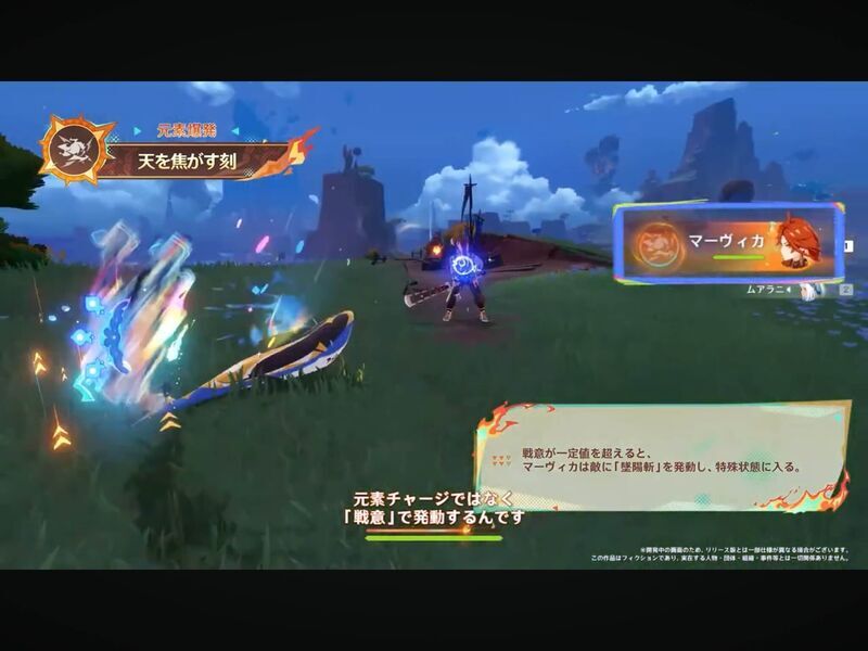 元素爆発は少し特殊で、今までように元素エネルギーを貯めるのではなく、通常攻撃したり他のナタキャラが夜魂バーストを発動したりすることで「戦意」が貯まっていき、一定値に達すると元素爆発が撃てるみたい。